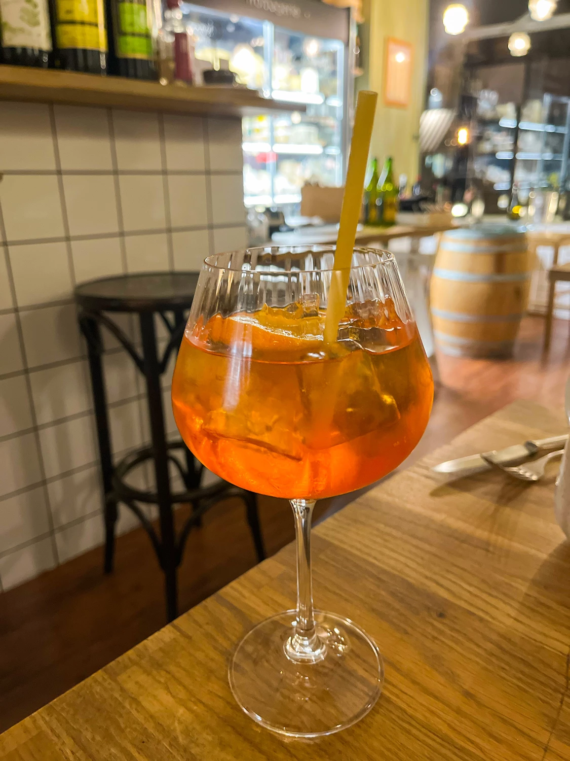 Ajouter ensuite un peu d'eau pétillante pour allonger le spritz (il faut que le spritz garde sa belle couleur orange pétante).